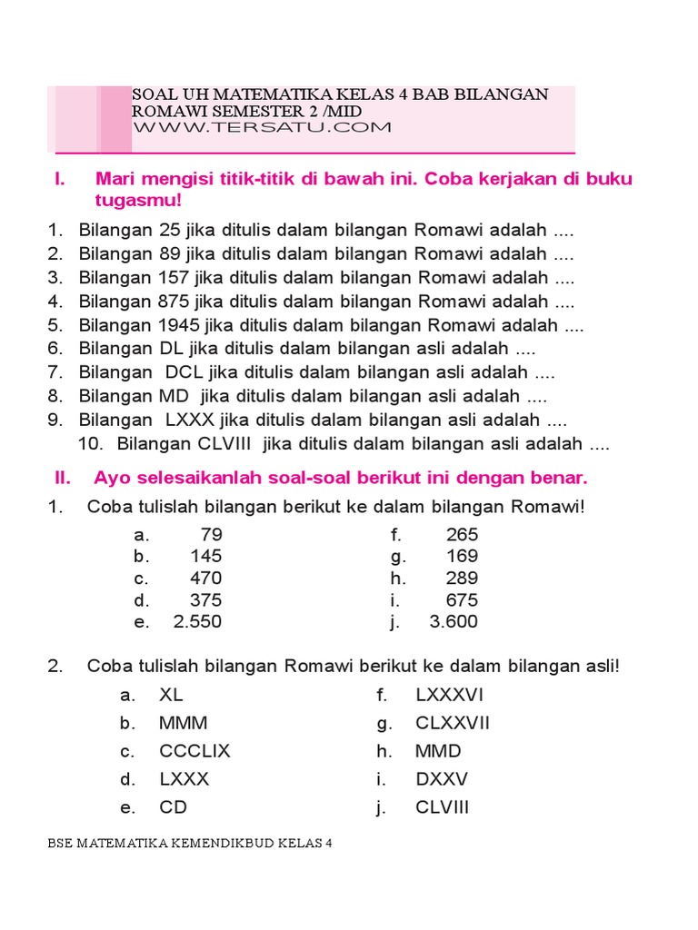 Soal Uh Bilangan Romawi Matematika Kelas 4 Semester 2 Pdf